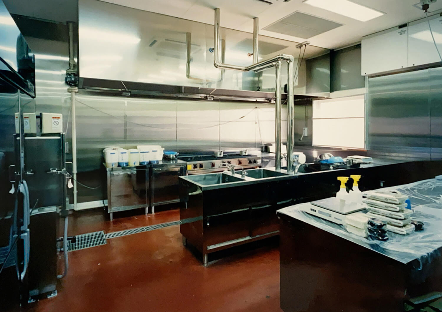 This factory was the first one in the Kansai region for the food company supplying packed lunch to convenience stores. Since it was designed after the earthquake, its structure is the seismic design and we install a pit as measures against the earthquake for underfloor pipe on the first floor. In addition, the area of first floor was minimized to secure the passage and parking space for delivery vehicles, and 3rd floor is designed to have overhanging space more than 4m to meet gross floor area requirement.